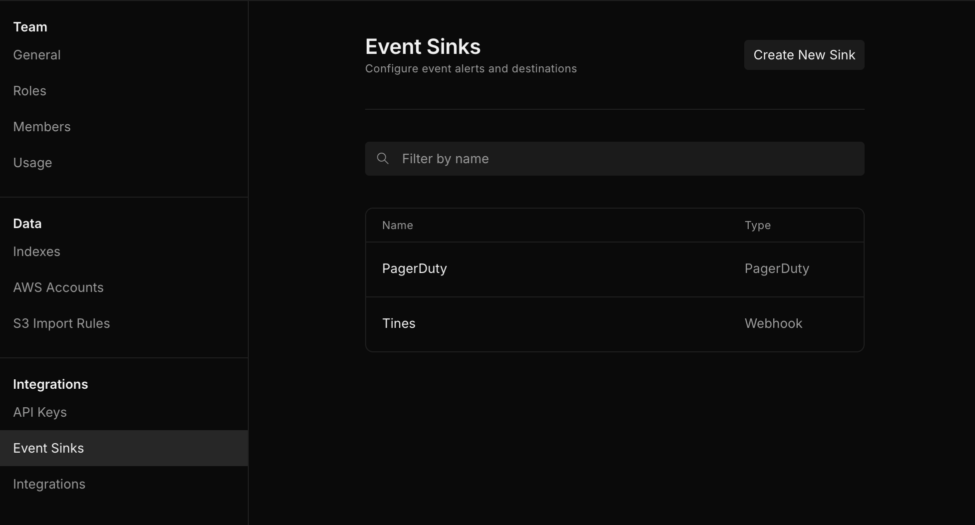 Types of event sinks